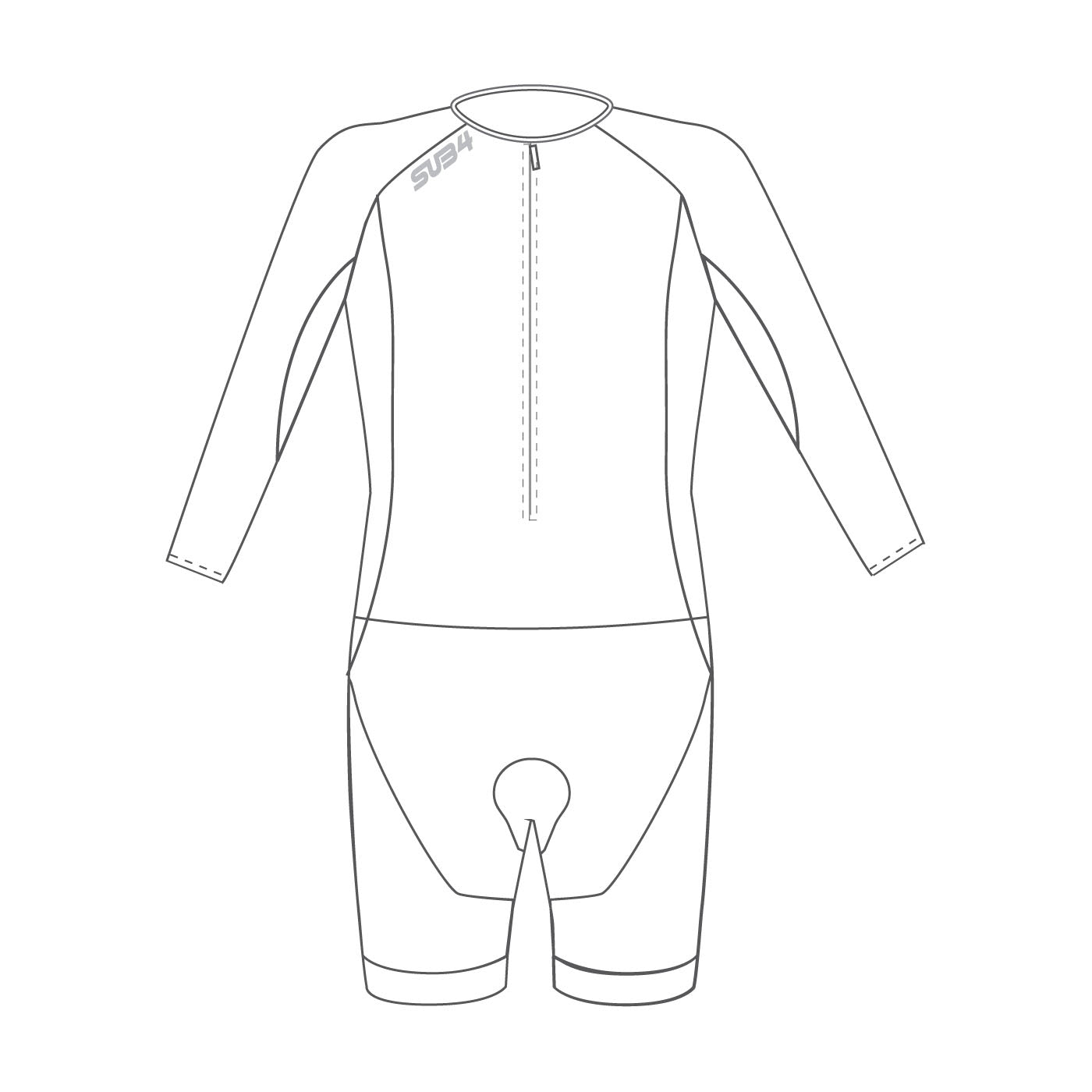 Sub4's Custom Cycling Supersuit, a superior skinsuit option with breathable panels on the rear & underarms. Available with a rear zip if required. Dimpled arms & shoulders enhance reduced wind friction. Seamless leg openings.